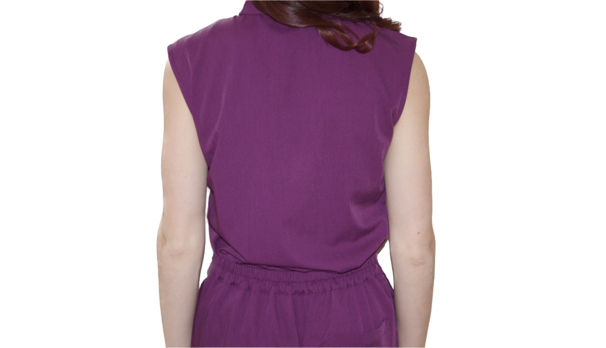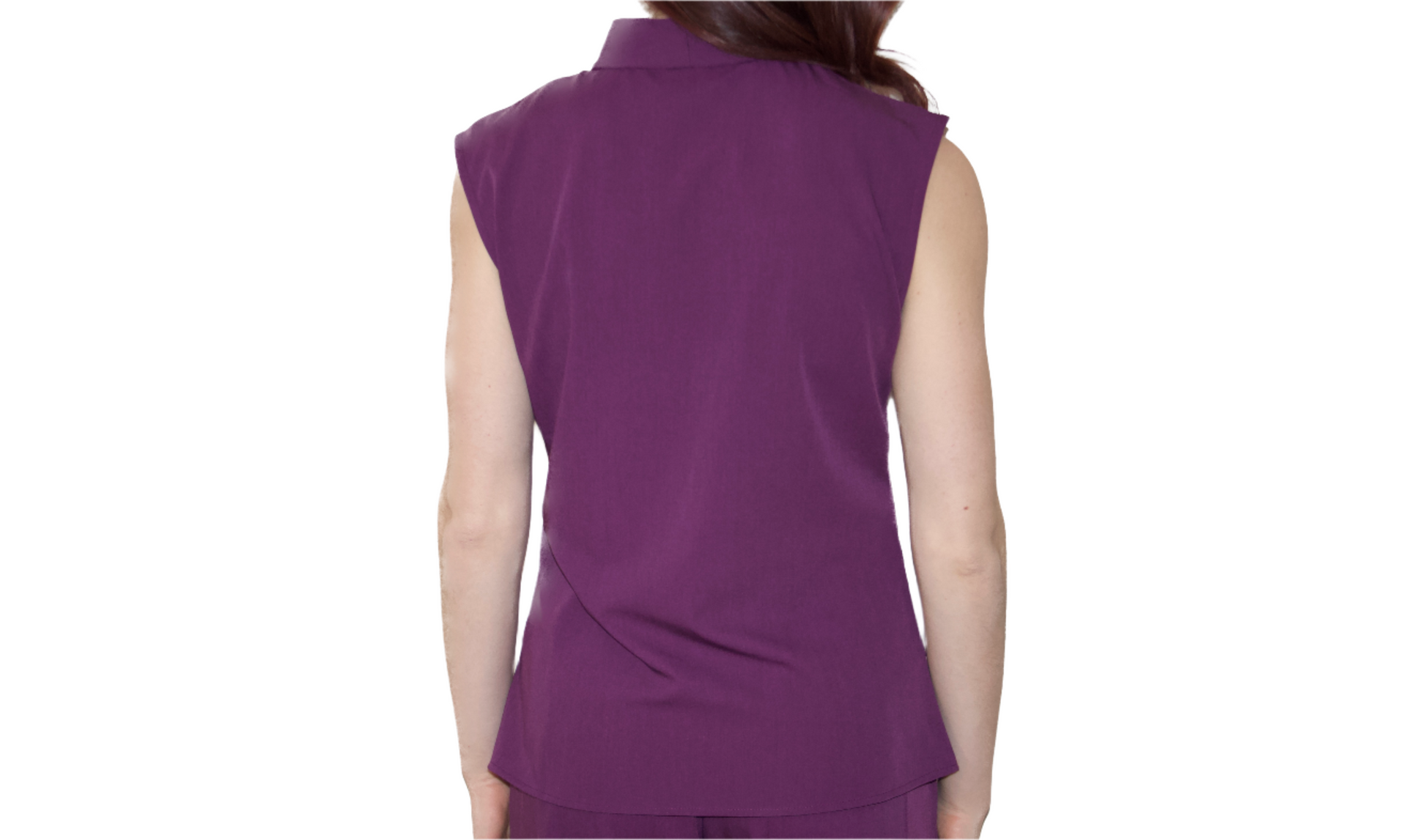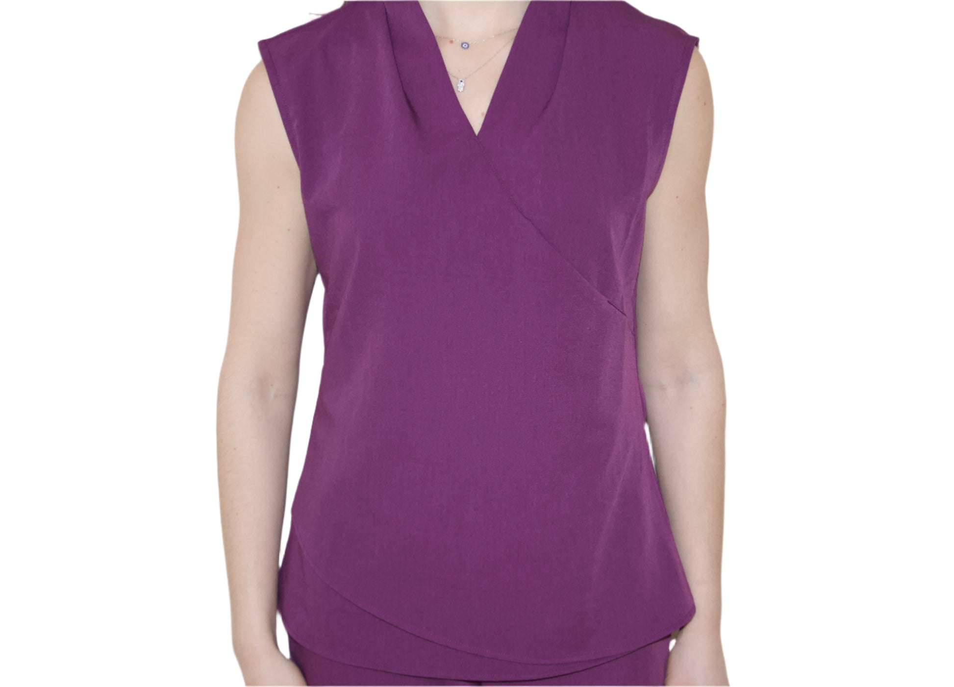 The Câline top contains a hidden breast pocket and a chic criss-cross design, as well as a flattering sinched waist look that can be worn over a pant or tucked in.